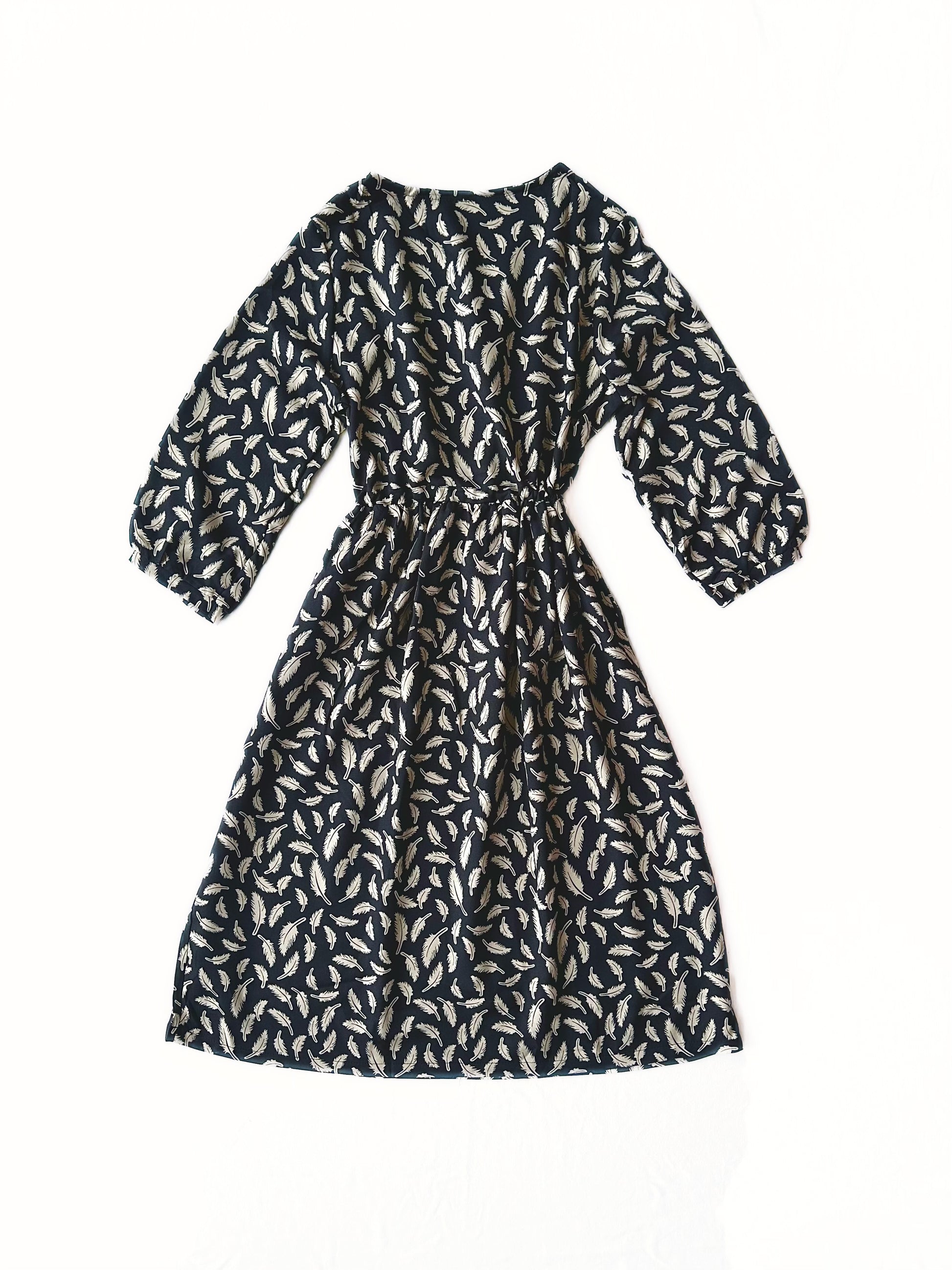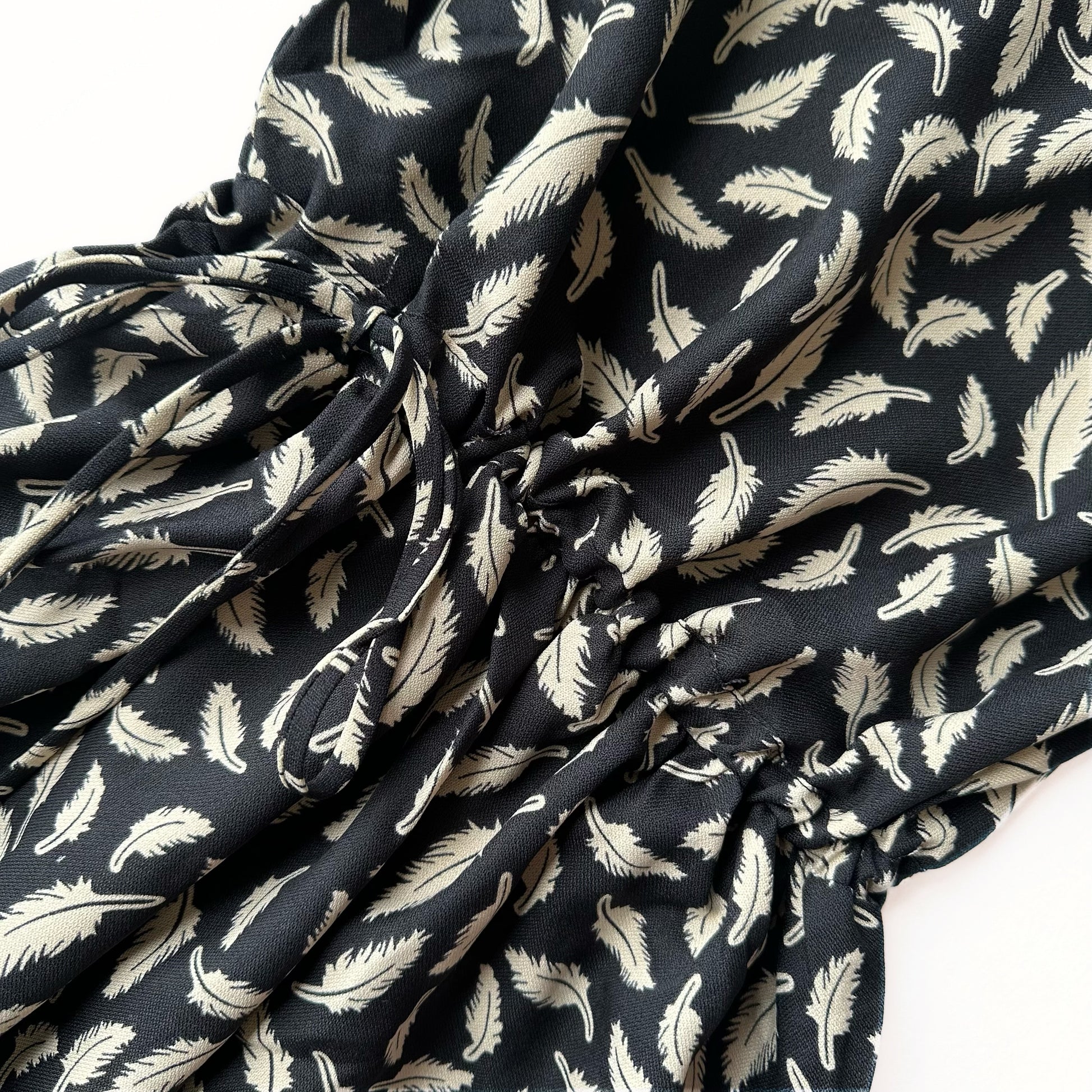 A relaxed silhouette featuring a delicate feather pattern. Adjustable drawstring waist allows flexible styling from loose to defined. Perfect for effortless sophistication.
