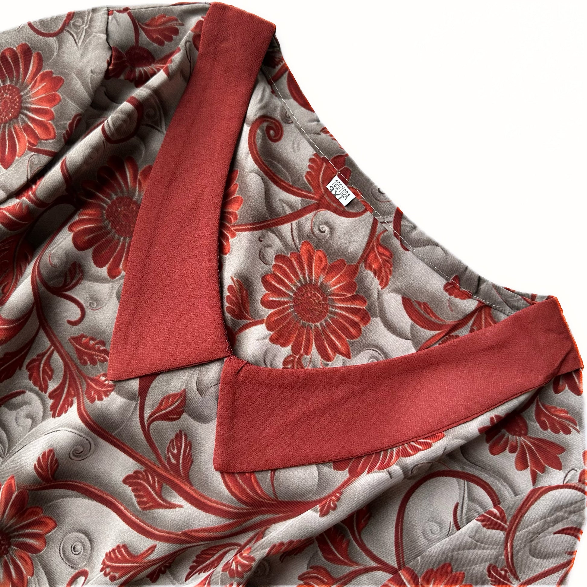 Designed in a smooth matte satin that flows with movement, this dress falls straight without waist shaping. The artistic peony motif lends sophistication while maintaining fluidity. Style loose for understated charm, or add a belt to highlight the waist.