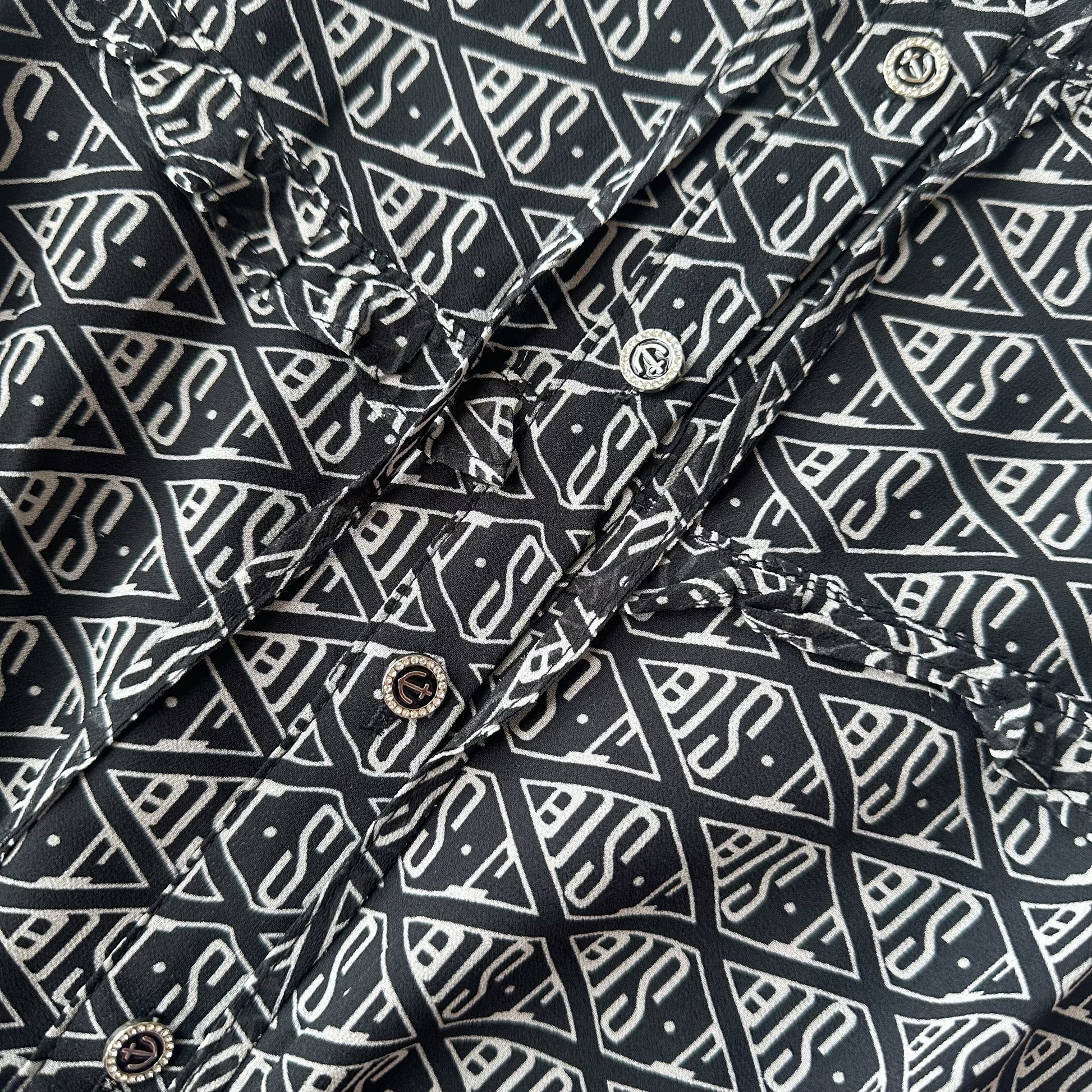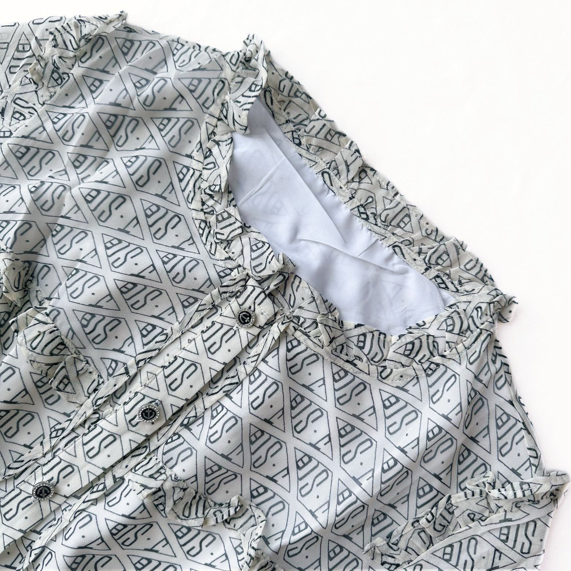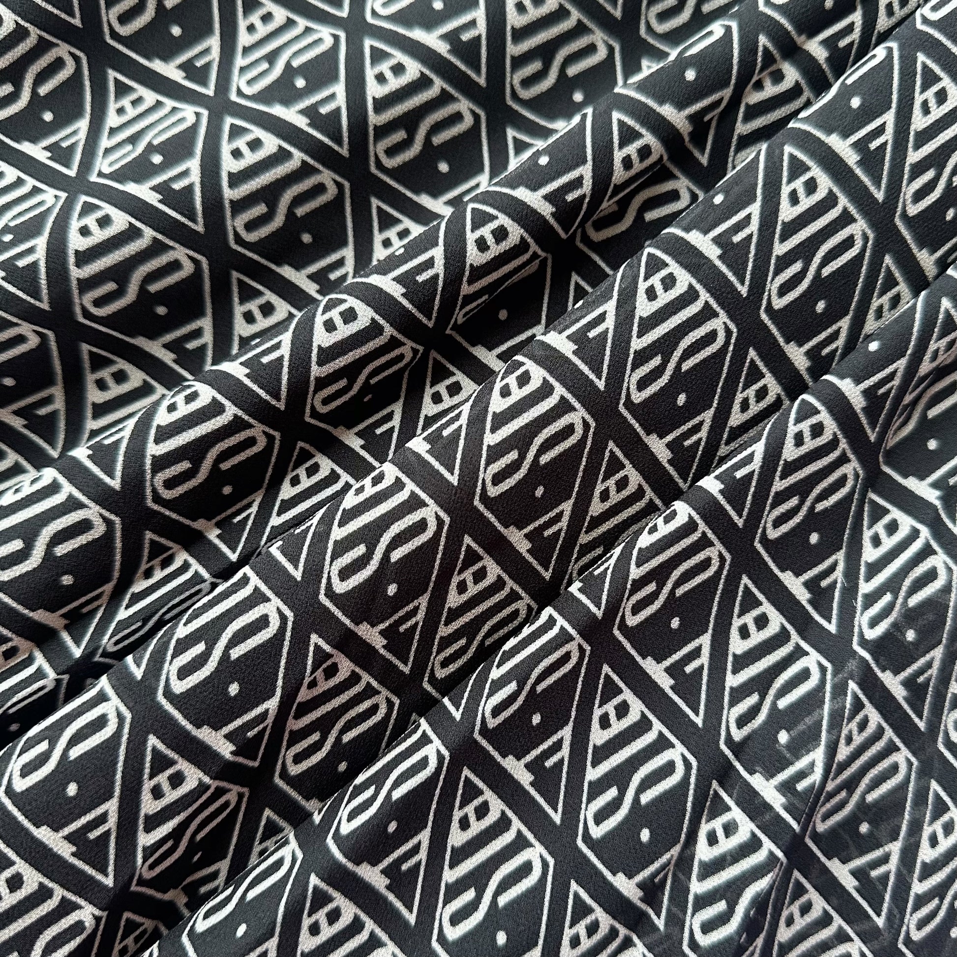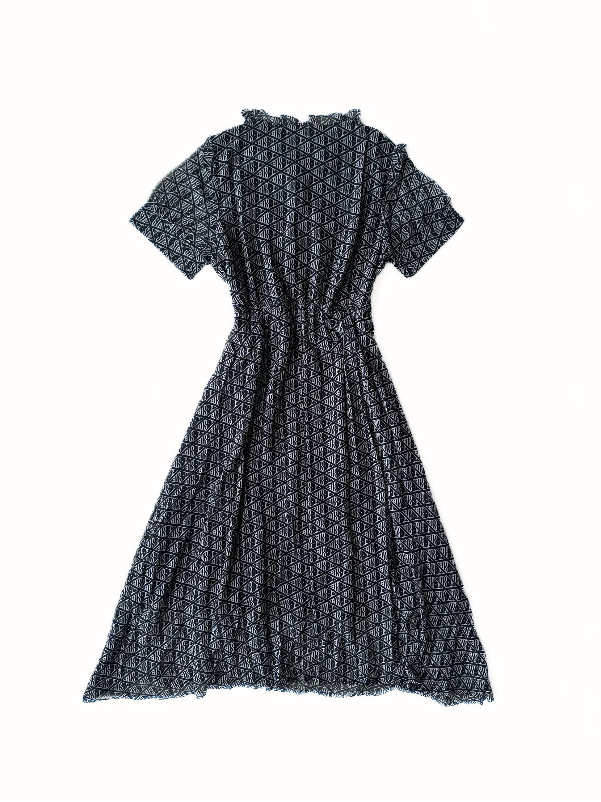A sophisticated midi dress featuring a soft draped fabric with a geometric all-over print. Designed with an elasticated waist for a comfortable, flattering fit. Lightweight, breathable, and perfect for daily wear or elegant casual occasions.