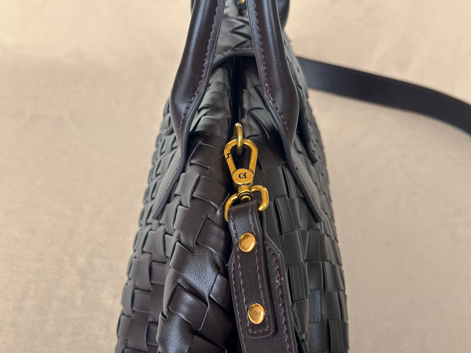 Dark Brown Hand-Woven Leather Shoulder Bag