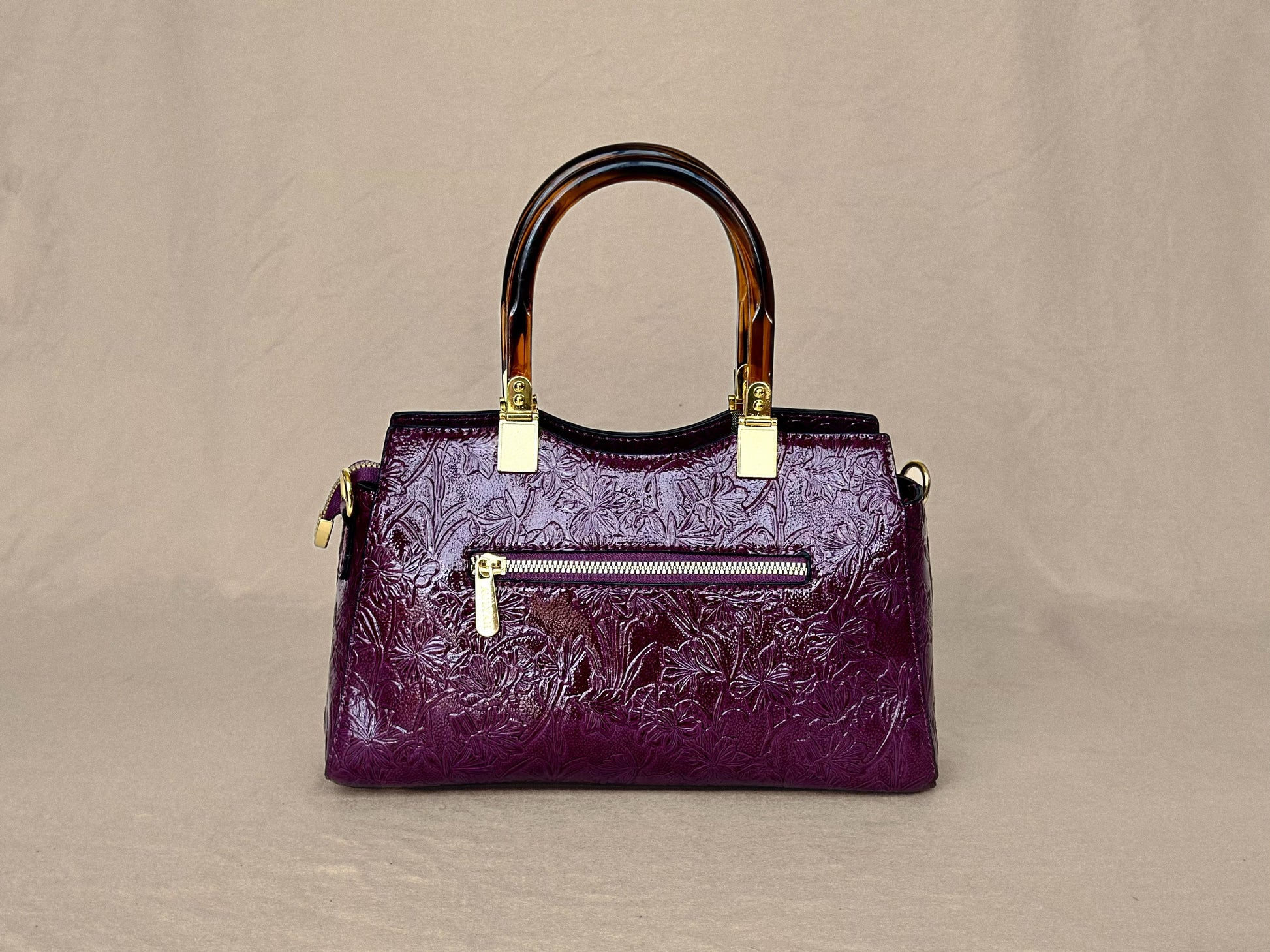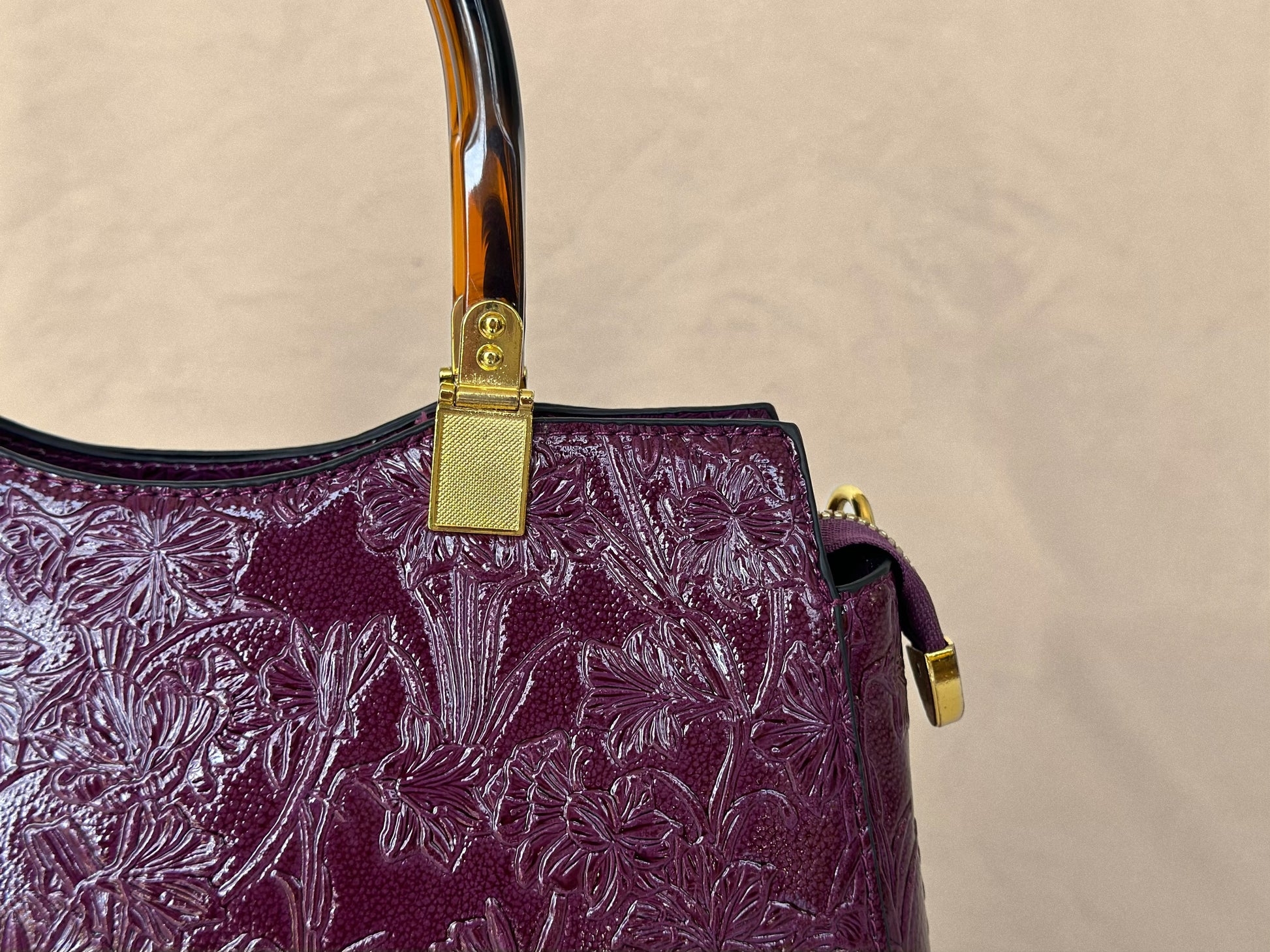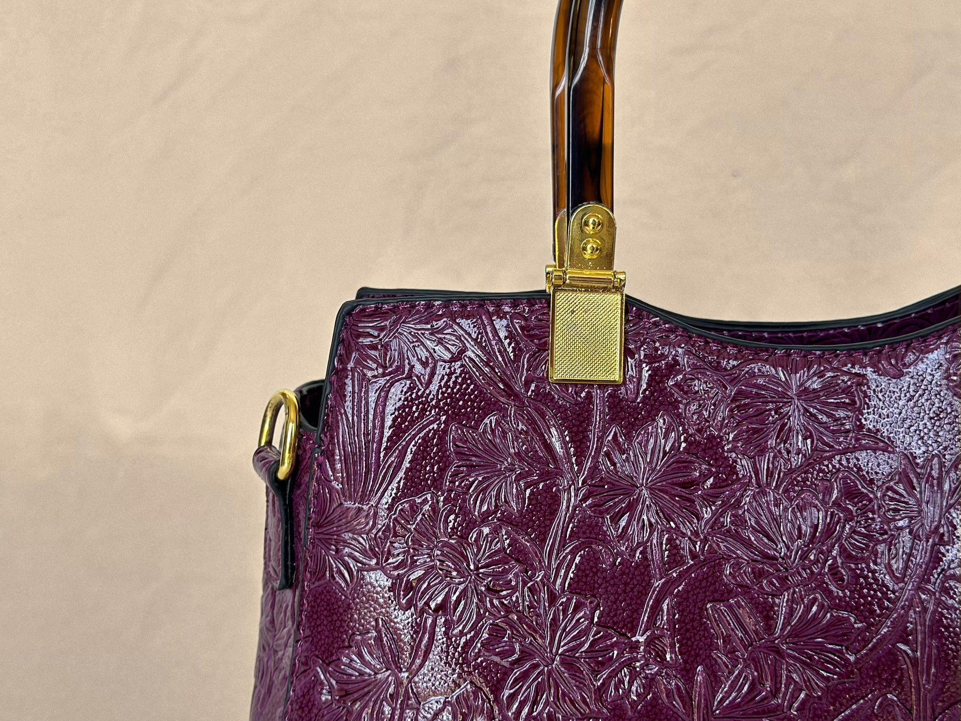 Plum Embossed Vintage Top Handle Bag